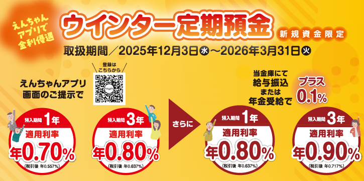 「えんちゃんアプリ優遇ウインター定期預金」取扱開始2025年12月03日個人法人重要